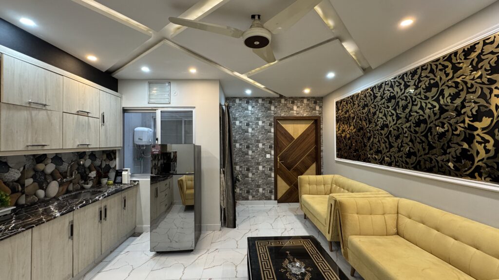 Bahria Town Lahore is a well-planned community that offers many facilities such as restaurants, grocery stores, parks, and shopping areas. Staying in this area means you can easily access everything you need during your stay.